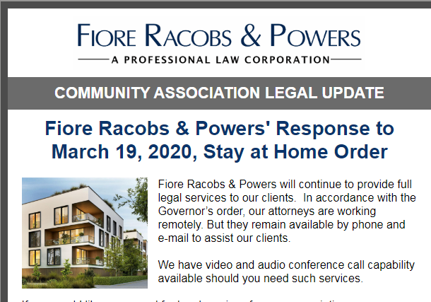 Fiore Racobs & Powers Legal Alert - AB 130 Caps Association Fines and More